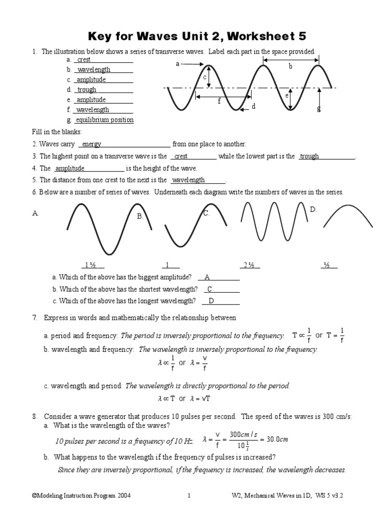 PDF Name: Date: Anatomy of a Wave Worksheet Answers - TeachEngineering Anatomy of a Wave Worksheet Answers Objective: Identify the parts of a wave and draw your own diagrams of waves. Background: Many types of waves exist, including electromagnetic waves and mechanical waves. Waves move in different ways and have different properties. Part 1 In the diagram below, identify the parts of a wave by using the provided ...