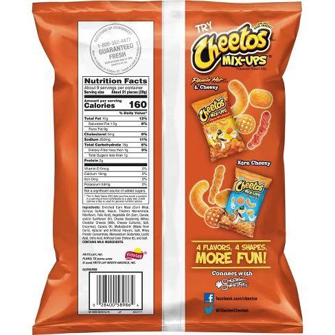 1-48 sur 64 résultats pour "Cheetos" - Amazon Amazon.fr: Cheetos. ... Cheetos XXTRA Flamin HOT Crunchy 8.5 oz (Pack of 3) ... Cheetos Mac 'N Cheese 5.7 oz / 164 g, Cheesy Jalapeno, 3 Pack. Hot Cheetos Food Label - Pensandpieces July 6, 2018 - Labels are a means of identifying a product or container through a piece of fabric paper metal or plastic film onto which information about them is printed. Get nutrition information for cheetos items and over 150000 other foods including over 2500 brands. Cheetos - Open Food Facts Facet knowledge panel · Crunchy - Cheetos - 2 oz · Cheetos · Cheetos Xxtra Flamin' Hot Crunchy Cheese Flavored Snacks · Cheetos Cheese & Bacon Balls · Dracoulinia - ...