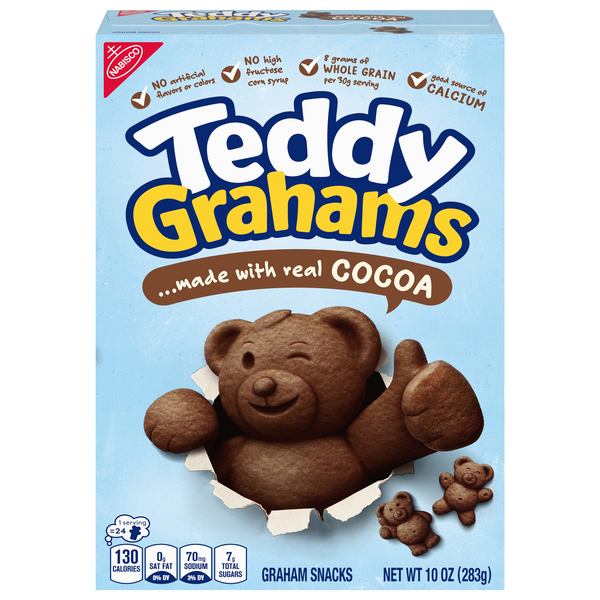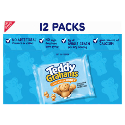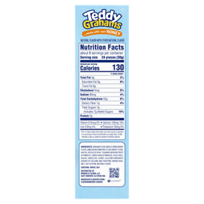 Nabisco Teddy Grahams Honey Graham Snacks - H-E-B Nutrition Facts. Teddy Grahams Honey Graham Snacks. about 9 Serving Per Container. Serving Size: 24.00 pieces(30g) Amount Per Serving. Calories: 130: Calories from Fat: 0 ... Nabisco Teddy Grahams Cinnamon Graham Snacks, 10 oz. $4.14 each ($0.42/oz) Add to list. Stauffer's Original Animal Crackers, 12 ct ...